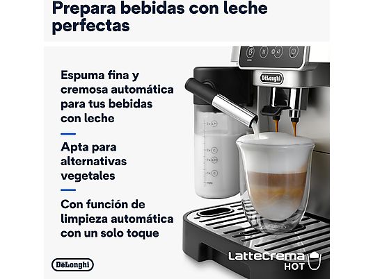 LatteCremaHot cubre tus bebidas con una fina espuma de leche y permite una limpieza automática con solo presionar un botón.