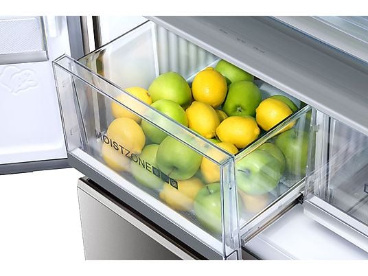 Gracias a los cajones, Humidity-Zone. Puedes mantener la fruta y verdura el doble de tiempo frescos, regulan mecánicamente la humedad hasta 90% conservando la frescura de los alimentos sin que pierdan sus propiedades nutricionales…