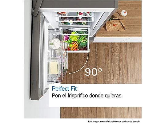 Pon el frigorífico donde quieras. Mientras que los frigoríficos convencionales necesitan una distancia de unos 10 cm respecto a las paredes laterales para poder abrir sus puertas y cajones, los frigoríficos con Perfect Fit pueden colocarse incluso pegados una pared o mueble. Además, el frigorífico cuenta con puerta reversible y tiradores laterales integrados.
