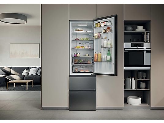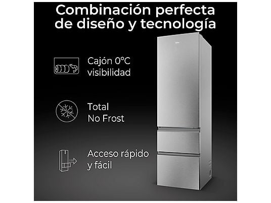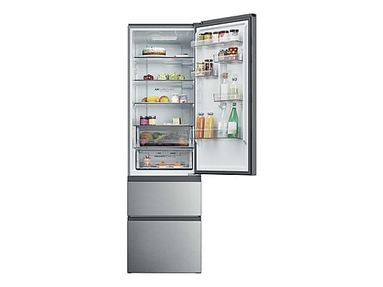 Frigorífico combi – Haier 3D 60 Series 3 HTR3620DNMG, No Frost, 205 cm, 414 l, Fresh 0°C Zone, Direct Access, Inox