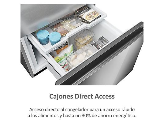 Los cajones Direct Access te ofrecen un acceso rápido y cómodo a los alimentos congelados, con una visibilidad clara y ordenada del interior. Al abrir solo el cajón necesario, se evita la pérdida de aire frío, ayudándote a mantener una temperatura más estable y a reducir el consumo energético hasta en un 30%. Encuentras lo que buscas en menos tiempo y mejoras la eficiencia en cada uso.