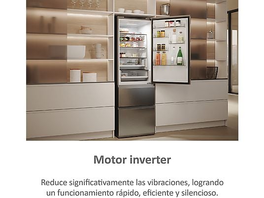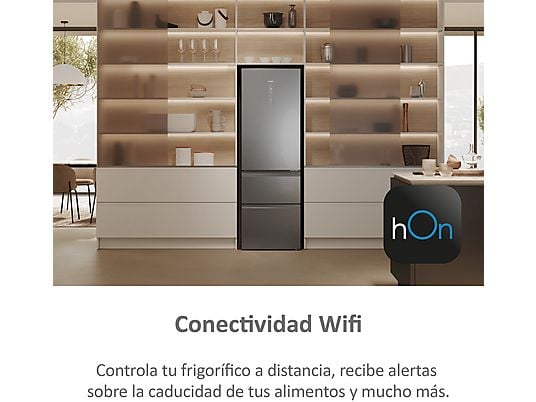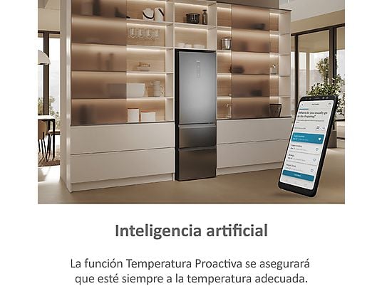 Frigorífico combi – Haier 3D 60 Series 5 HTW 5618CNMG, No Frost, 185 cm, 360 l, Motor Inverter, Wi-fi, Plata