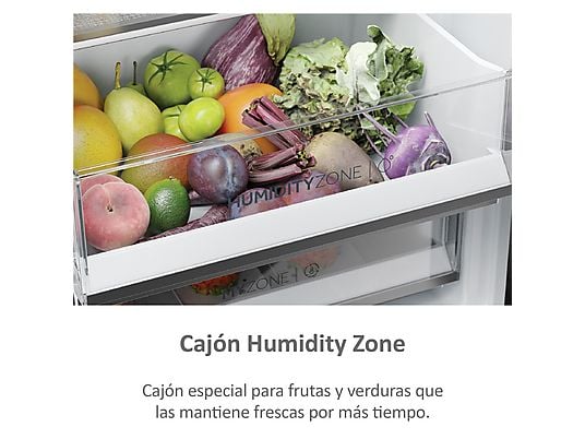 Gracias a la tecnología Humidity Zone, puedes conservar frutas y verduras hasta el doble de tiempo en condiciones óptimas. Este cajón regula de forma mecánica la humedad hasta un 90%, creando el entorno ideal para mantener la frescura, el sabor y las propiedades nutricionales de los alimentos.