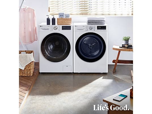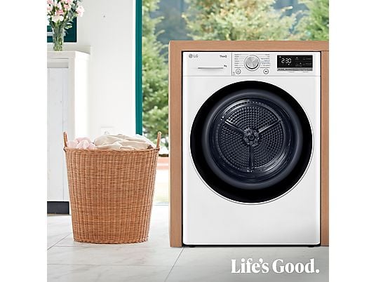 Secadora bomba de calor – LG RH80V9AV4N, 8 kg, 14 programas, Dual Inverter Compressor™, Eco Hybrid™, Display Gran LED, Blanco